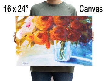 This option is available in 8x10 inches, 11x14 inches or 16x20 inches. They look and feel like an original painting. They slide right in to a matted frame which can be purchased separately (starting at a few dollars at your local Target or online).